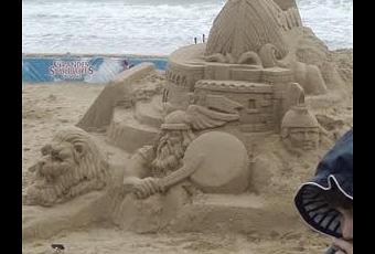 Où que nous allions, il y a toujours cette attirance pour les sculptures. Dans la rue, sur la plage. Les toucher si possible... sauf ces sculptures de sable du Puy du fou.