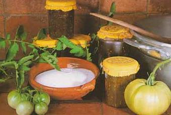 Pour 8 pots de 500g environ : 2 kg de tomates vertes, 2 kg de sucre semoule, 1 pamplemousse jaune, 500g de pommes à chair ferme.
