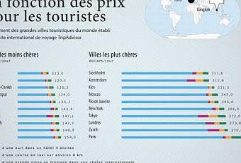 Cliquez sur l'image pour agrandir.Villes les moins chères (dollars par jour)