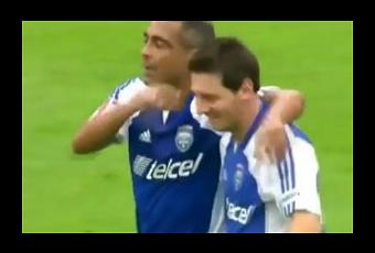 Réunis sous le même maillot le temps d’une rencontre de bienfaisance, Messi et Romario s’en sont donnés à coeur joie.