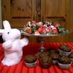 Pour une fête d'enfant, à Päques ou tout simplement pour faire une surprise aux enfants, pourquoi pas des aliments santé? De belles fraises rouges et pétillantes avec de petits gâteaux maison cacao-courgette. Une présentation spéciale, une histoire amusante et un lapin comme invité spécial ajouteront ne note joyeuse à la fête.