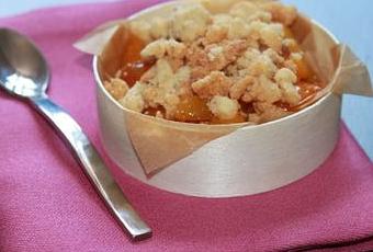 Dresser le dessert en mettant les mirabelles au fond de votre contenant, puis recouvrir de crumble.