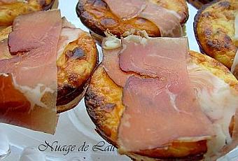 * Envelopper chaque muffins avec une bande de speck. Donner un tour de moulin à poivre.