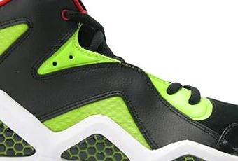 Reebok et Swizz Beatz nous présentent la nouvelle Reebok Kamikaze III Black/Sonic Green-Excellent Red qui revêt un dessus en mesh vert contrasté par du cuir, cuir verni et daim noir, par des touches de rouge et par une semelle blanche.