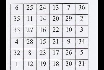 111 est aussi le nombre obtenu en additionnant chaque colonne ou chaque ligne ou chaque diagonale du carré magique, dit d'ordre 6, qui est ici reproduit (il y a d'autres possibilités). Un carré magique d'ordre 6 a d'autres particularités : les chiffres qu'il contient vont de 1 à 36, le total de tous les chiffres de 1 à 36 donne 666 (le chiffre de la Bête de l'Apocalypse !). 111 est égal à 666/6.