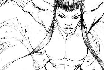 Personnellement, je trouve que la couleur de Steigerwald casse un peu le travail de Benitez, surtout au niveau du visage. L’ensemble, donne un effet assez plat, sauf au niveau de la poitrine. On a l’impression que le coloriste à repris le dessin de Benitez en élargissant les bras du personnage. Pas franchement une réussite.