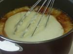 Dans une casserole portez à ébullition le lait. Ajoutez le sucre et versez la semoule en pluie. Sans cesser de remuez, laisser cuire pendant 10 mn. Ajoutez le beurre fondu et mélanger. Mettre de côté.