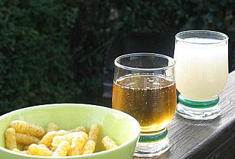 Il est 19h30, mon p'tit verre de cidre est servi (du brut, bien sûr !!), Mr lui a son Bardouin et les petits gâteaux, les braises chauffent .... un bon début pour ces vacances.