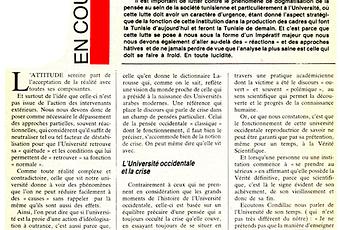 On ne peut réellement comprendre la fréquence remarquable de la présence des personnes aux profils professionnels ayant un rapport direct avec la formation technicienne ou scientifique, dans les rangs des intégristes islamistes, sans révéler, au grand jour le mode de penser absolutistes , qui caractérise aussi bien le discours religieux que celui métaphysique des scientistes. Dans une étude , élaborée en 87, au moment où, pour parer aux agissements déstabilisateurs des étudiants extrémistes de tous bords , le ministre de l’Enseignement Supérieur, médecin de formation, n’avait trouvé que le recours à la construction d’une haute clôture, pour protéger le campus contre des idées, je m’étais autorisé de publier cette analyse , non conforme à l’idéologie officielle du Parti (Authenticité islamique de nos ancêtres et Ouverture sur les Sciences et Techniques de l’Autre). La présence d’un Ben Salem aux côtés de Ghanouchi, au sein d’Ennahdha et bien d’autres exemples constituent, aujourd’hui, une illustration de cette solidarité des dogmes.