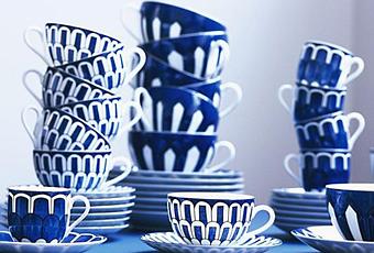 Hermès nous propose un voyage sur notre table avec sa nouvelle collection Bleus d'Ailleurs inspirés de la Chine et la dynastie Ming pour ses vases, des tribunaux européens du XVIe siècle, des mosquées de Samarcande et des minarets d'Ispahan.