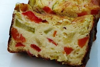 - 6/ Versez la farine et la levure en pluie. Mélangez bien. Ajoutez les légumes. Versez le mélange dans le moule à cake.