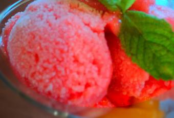Premier essai de sorbet sans sorbetière! Verdict : très bon, le seul hic est qu'il fond assez vite donc à consommer sans tarder!