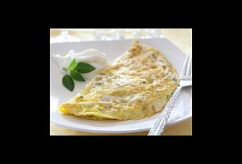 Dans une poêle bien chaude, ajouter un filet d’huile d’olive puis verser la préparation. Cuire l’omelette à votre convenance.