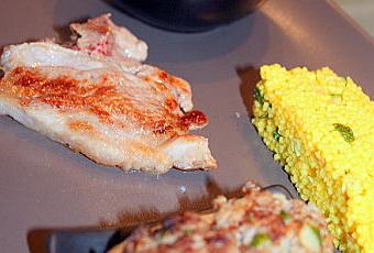 Une côtelette simplement grillée accompagnée de boulettes et d'un petit sauté d'agneau aux cacahuètes façon tajine....