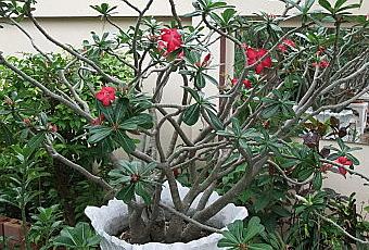 Les Roses du Désert (Adenium) âgées et bien ramifiées peuvent fleurir sans discontinuer toute l’année.