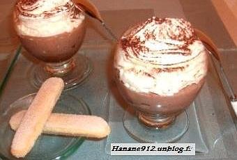 Trempez vos boudoirs dans le café . Puis déposez dans le verre , ajouter une couche de crème chocolat, une couche de crème nature . Saupoudrer de cacao en poudre. Réserver au frais et servir frais.