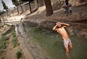 d’un parent. Une façon de profiter de l’été et de se rafraichir tant bien que mal. Ici à Kaboul, la capitale, les amplitudes thermiques journalières de plus de 25 °C sont assez fréquentes.