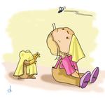 Fascinée , Capi suit des yeux les tribulations chaotiques du coléoptère intrépide ...sans prêter la moindre attention aux pitreries ridicules de Pluchon Jr ..Quel suspens !! Quelle tension !! Et surtout quel prochain rebondissement attend notre petit poupon ?? Où se rend donc la petite mouche ?? Mais que font Cha et Lapoupou pendant ce temps ?? A de-demain ??