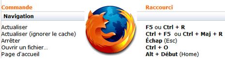 libellules.ch vous présente un tableau des raccourcis clavier les plus courants dans Firefox. Utile de les connaître pour une navigation plus agréable. Il vaut vraiment la peine de consacrer un peu de temps à les mémoriser. Firefox vous semblera ensuite encore plus fun ! Vous remarquerez très vite, si vous utilisez les deux navigateurs vedettes de la toile (IE et Firefox), que ceux-ci partagent un bon nombre de raccourcis clavier.