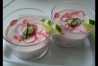 *Dans deux verrines , disposer la moitié du chèvre et quelques rondelles de radis.