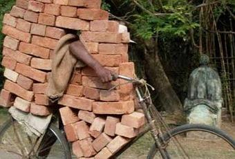 Je reste admirative devant l'ingénérie, rudimentaire certes, mais bien pensée tout de même, qui permet à ces briques de tenir sur un vélo.