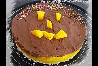 Un délicieux entremet issu du merveilleux livre L'encyclopédie du chocolat : le mélange mangue/chocolat/coco est vraiment délicieux. Dommage, j'ai eu quelques soucis pour ma chantilly au chocolat (cf plus bas dans la recette !) Cela me fera une raison de le refaire, cette fois avec les fruits de la Passion je pense car ils doivent apporter un côté acidulé bien agréable.