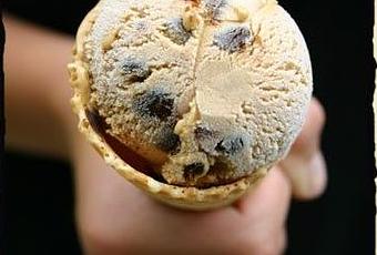 Apres un repos de 24 h au réfrigérateur, le mélange est placé dans une turbine à glace jusqu'à l'obtention d'une bonne constitution.