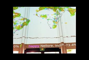 Une cartographie émotionnelle de la planète basée sur l'analyse des mots clés dans Google Actualités, c'est l'un des 15 volets de la Mécanique des émotions initiée en 2005 par Maurice Benayoun, "explorateur multimédia". Emotion Forecast: La Metéo des émotions du monde, qui nous permet, en temps réel, de connaitre avec 3 jours d'avance, l'état émotionnel de la planète. L'oeuvre était présentée à Enghein les Bains dans le cadre de son exposition personnelle en juillet dernier. Piionnier de l'art numérique en france, Maurice Benayoun a répondu à quelques questions pour Déliredelart.