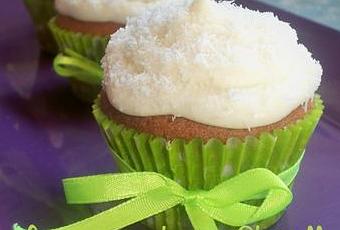 A l'aide d'une poche à douille, disposer le glaçage sur le cupcakes et les saupoudrer de noix de coco.