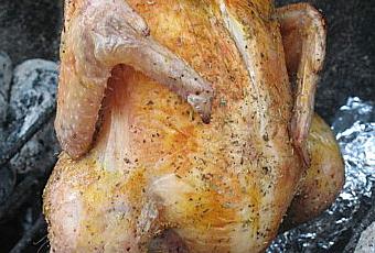 Déposer la volaille debout sur la canette sur le barbecue et l'entourer de braises brûlantes.