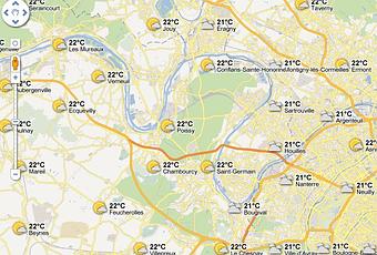 Petit nouveau dans Google Maps (le site) puisqu’il est maintenant possible d’avoir les prévisions météo sur les cartes, il suffit pour cela d’activer l’option en haut à droite.