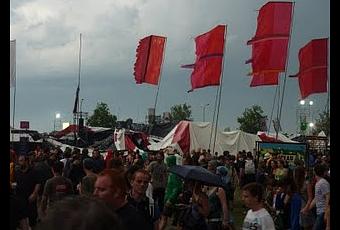A 18h20, les premières gouttes de pluies s'abattent sur le festival, tout le monde se rue dans les tentes du festival pour se mettre à l'abri. Alors qu'on était en pleine journée d'été, le ciel devient noir comme la nuit, puis jaune chaos : la fin du monde.