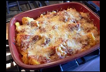 Faire préchauffer le four à 200° (Th : 6-7), beurrer un plat à gratin, placer les morceaux de polenta dans le plat sans chercher à égaliser. Recouvrir d'une grosse boîte de sauce bolognaise, puis parsemer de fromage râpé et ...Zou, au four. D'abord pour réchauffer (environ 15 minutes) puis sur la position grill pour obtenir le gratinage.