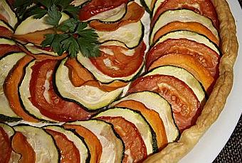 Disposer les lamelles de légumes en rosace puis enfourner durant 30 minutes à 180°.