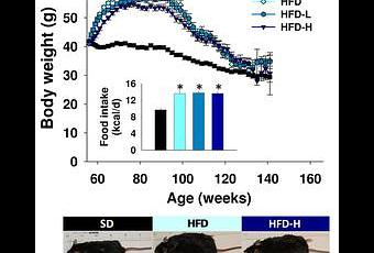 Cette étude en laboratoire a étudié les effet de l'enzyme appelée SIRT1, activée par le composé synthétique appelé SRT1720, chez des souris nourries avec un régime riche en graisses, avec ou sans SRT1720 ou avec une alimentation standard. Le SRT1720 n'apparaît pas comme toxique pour les souris et SRT1720 parvient à réduire significativement les masses graisseuses et augmenter la durée de vie moyenne et maximale des souris soumises à un régime alimentaire riche en graisses.