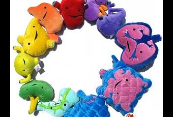 Maintenant que je suis grande, je dois avouer que j’ ♥ les peluches « I heart guts » (dans ce contexte = « j’ ♥ les organes»). Par contre, câliner un rein pour s’endormir le soir après une longue journée ?! Commander au père-noël un cœur en peluche (quoique le bucheron du magicien d’Oz aurait certainement apprécié un joli cœur, même en peluche). En tout cas, moi je les trouve trop mignons et puis c’est super éducatifs ! On peut commander un seul organe ou tout un groupe : genre le système digestif. Ils font aussi des t-shirts bébé – super cool et super « nerdy » comme on dit chez moi ;-)