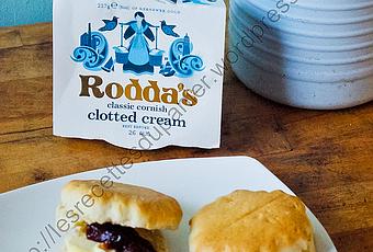 Ah les cream tea! Vous connaissez? Moi, ça fait plus de 20 ans (et vlan, voilà que je prends un coup de vieux) que je les ai découverts lors dans séjour en Cornouailles. Il s’agit d’une variété particulière du très britannique Afternoon Tea, ou thé de l’après-midi. Qui dit cream parle en fait de Clotted Cream. Kesako encore que ce truc là? Une véritable tuerie! C’est une sorte de crème fraîche très épaisse. Elle d’une couleur jaune pâle caractéristique. Comme récemment lu dans un livre de recettes anglaises de Dellia Smith, on pourrait l’appeler crème concentrée. Elle est obtenue en chauffant la crème pour évaporer une partie des liquides. Avec un minimum de 55% de matière grasse, c’est un délice sur des scones avec de la confiture maison. La meilleure à mon goût est celle de la photo, de la marque Rodda, justement produite en Cornouailles.