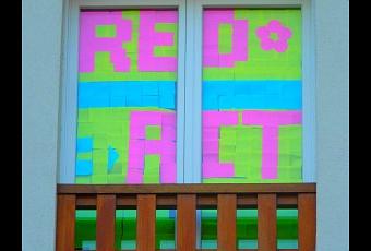 A Hoenheim, au cœur de la Communauté Urbaine de Strasbourg, Red-Act, agence de conseil en contenus rédactionnels, communication et médias sociaux, a décoré à son tour une fenêtre de ses locaux, d'un sourire, d'une fleur pacifiste et du nom de l'agence...
