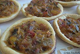 Les disposer dans un moule et remplir de compotée de légumes du soleil.