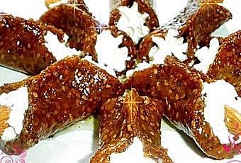 décorer de crème chantilly et d'amandes des 2 cote´s ouverts et déguster.