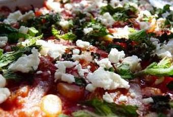 A sa sortie du four, parsemez-le de feta émiettée, de feuilles de menthe ciselées et servez aussitôt.