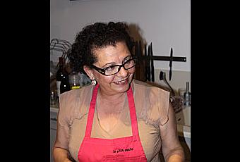 Mamina, très concentrée sur ses aubergines