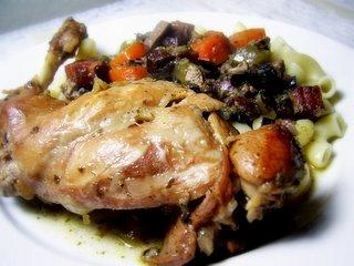 Nota : Daniel Pinard suggère de servir le lapin avec des haricots verts et de garder la sauce aux légumes pour la mélanger à des pâtes, le lendemain.