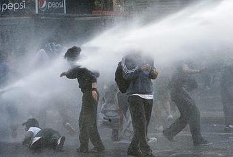 Mené par les étudiants qui demandent la gratuité de l’éducation, des centaines de milliers de chiliens défilent dans al rue depuis plusieurs mois pour demander au gouvernement une meilleure redistribution des revenus provenant du boom des compagnies minières. Hier, de nombreux jeunes ont bloqué les routes du pays, mettant le feu à des piles de pneus et balançant des pierres sur des voitures traversant Santiago. Pour disperser les manifestants, la police chilienne utilise les canons à eaux et le gaz lacrymogène. Depuis mercredi, 1300 personnes ont été arrêtées et incarcérées par la police. Deux policiers ont été grièvement blessés par des armes à feux tandis que les commerces et supermarchés de santiago sont dévalisés par les pilleurs.