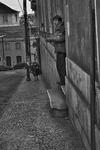 [Je voulais photographier la dame courbée qui grimpait la rue, un peu de cette manière. Et soudain l'homme à la cigarette est sorti de l'immeuble...]