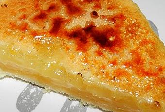 Au moment de servir, saupoudrer la tarte de cassonade et faire brûler au chalumeau (comme moi) ou sous le gril du four.