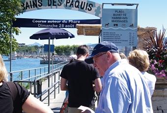La traditionnelle Course autour du phare a eu lieu ce dimanche devant un public nombreux composé la plupart de baigneurs qui ont acheté leur billet d’entrée (chf. 2.-) aux Bains des Pâquis dès le matin pour bronzer, se baigner ou simplement se détendre à l’abri du tumulte de la ville. Certains comme moi, ont fait le déplacement pour assister à cette course qui au fil des ans draine une foule d’habitués et de nageurs. “La course autour du phare” c’est un peu comme “La course de l’Escalade”. Elle se pratique entre amis et en famille de préférence. L’ambiance est garantie et le relais se transmet entre les générations. Trois catégories: Elite, Junior et Populaire. Rien d’étonnant de voir des parents et leurs enfants concourir chacun suivant son rythme dans une ou l’autre des catégories. Pour cette édition le record côté chrono est réalisé par Julien Baillod. Et un autre record est battu par les participants: une centaine de nageurs dont le plus jeune a juste 7 ans ont pris part aux compétitions. La course a failli ne pas avoir lieu à cause du temps de ces deux derniers jours non propice à la baignade et surtout de l’eau froide qui a gelé les ardeurs. L’inscription à la compétition “Populaire” qui comporte le plus grand nombre de participants est restée ouverte jusqu’au dernier moment histoire d’accueillir le plus de nageurs possible. Certains ont décidé à la dernière minute pour prendre part au dernier évènement aquatique de la saison estival. Le beau temps était au rendez-vous, la température de l’eau: 17 degrés. Mais heureusement que les nageurs ne se sont pas défilés et ont fait honneur à la 14ème édition de "La Course autour du phare”.