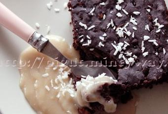 Dans une petite assiette, déposer un carré de brownie accompagné de crème dessert, de glace végétale, de coulis de fruits, ou de chocolat liquide (réchauffé au bain marie). Parsemer éventuellement de coco déshydratée ou de poudre d’oléagineux et déguster.