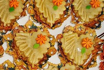 Mélanger la farine, au milieu verser le beurre fondu refroidi, et frotter la pâte entres les mains, puis rajouter le sel, la cuillère a soupe de sucre semoule, le jaune d’œuf, puis ramasser avec l'eau de fleur d’oranger, jusqu’a obtention d'une pâte lisse, laisser reposer 15 minutes dans un sachet alimentaire.