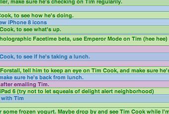 Voici l’agenda d‘une journée type dans la peau de l’ex-patron d’Apple, créé dans l’humour et la bonne humeur par The Joy of Tech. On oublierait presque que l’homme a été obligé de quitter son poste à cause de ses problèmes de santé.